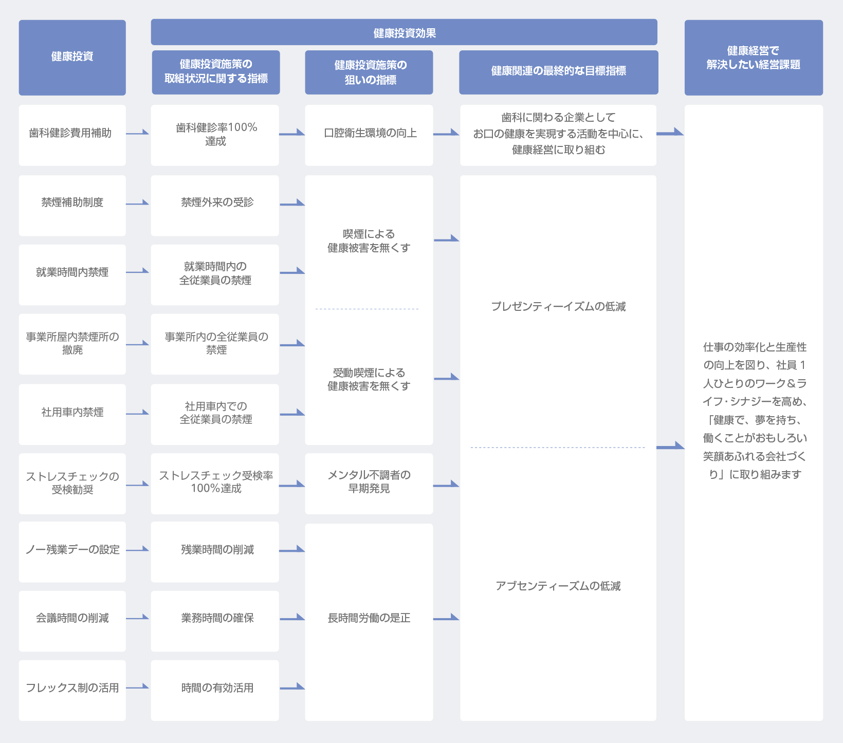 当社では、「健康経営戦略マップ」より、口腔衛生、