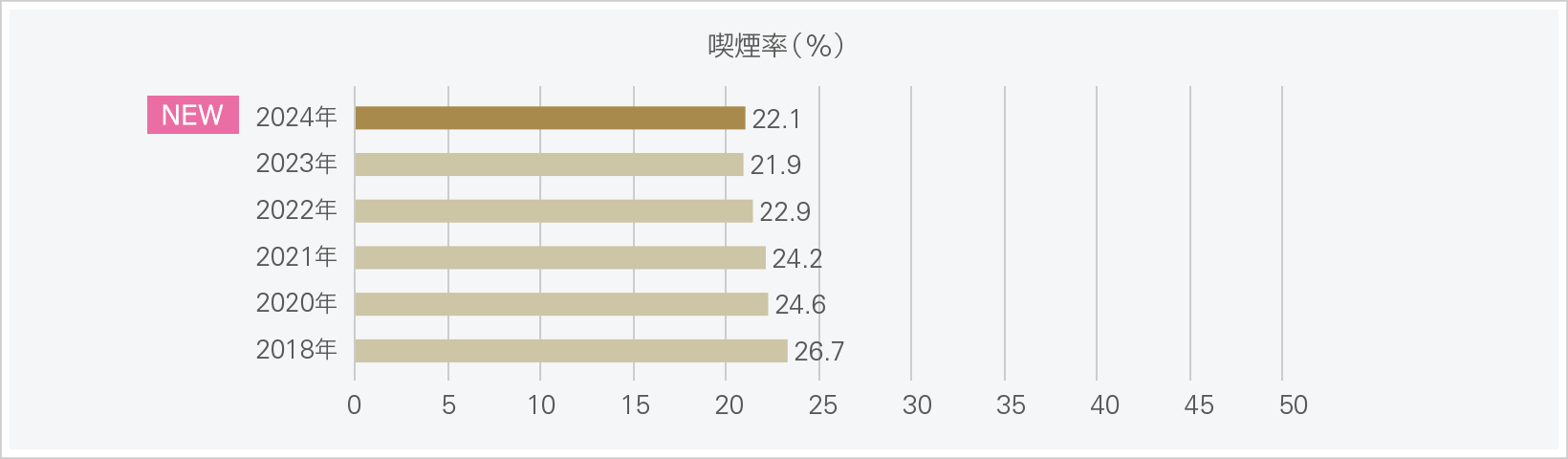 受動喫煙防止対策の成果として、喫煙率は2016年以降減少傾向にあります。