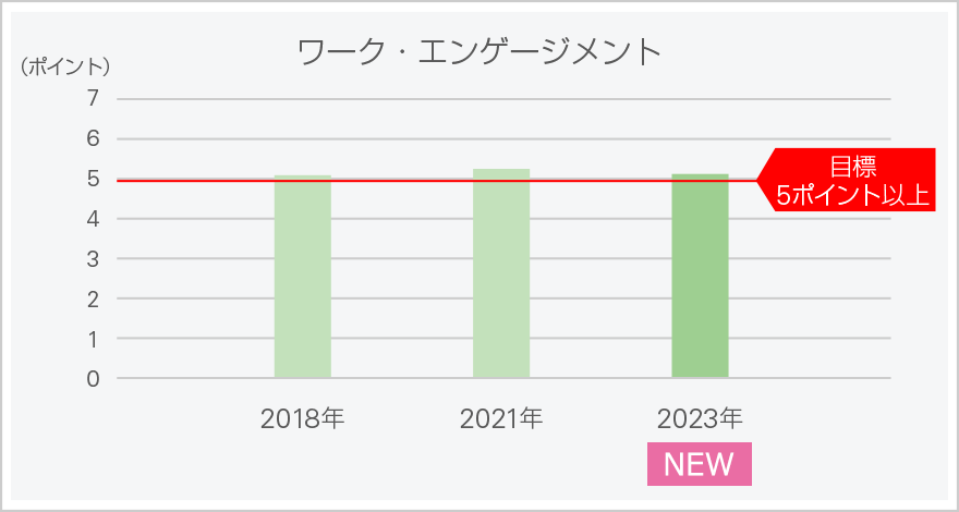 これまで、当社のワーク・エンゲージメントは目標の5ポイント以上を達成し、非常に高い数値で推移しています。